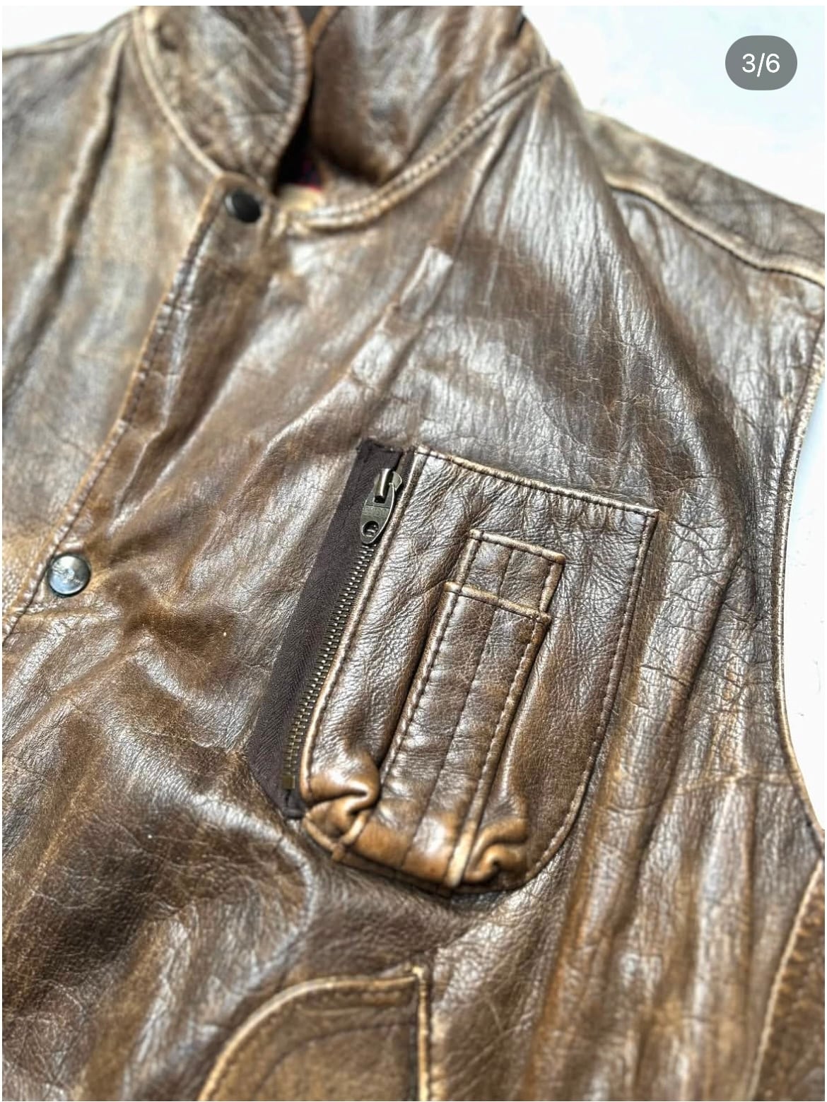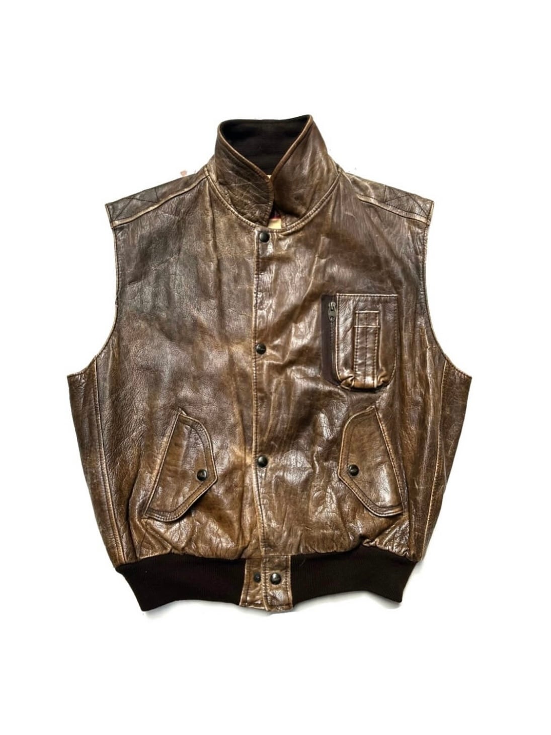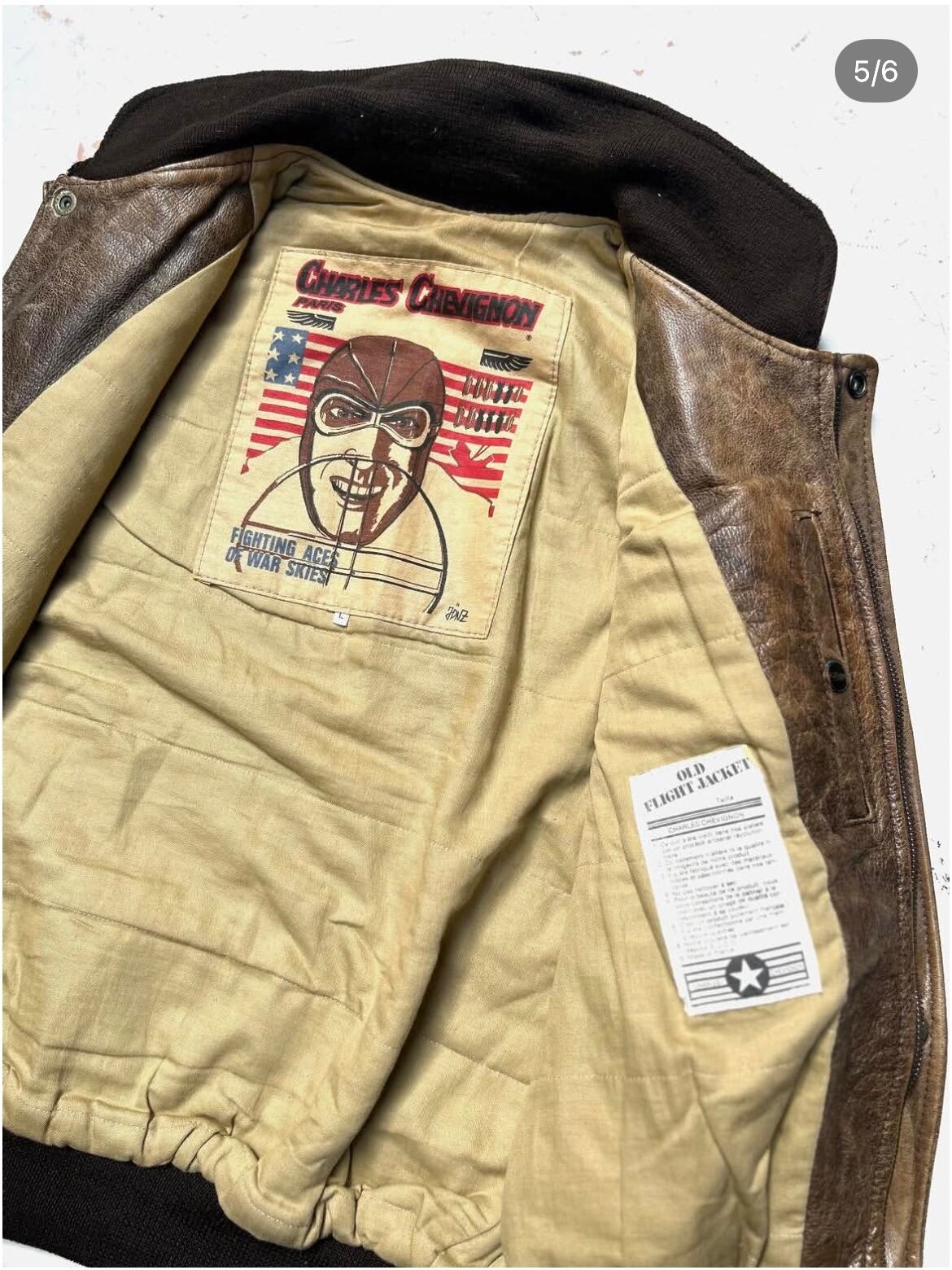 made in France 1980's CHARLES CHEVIGNON flight leather vest