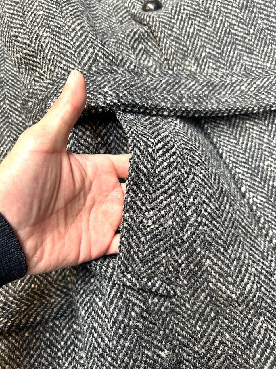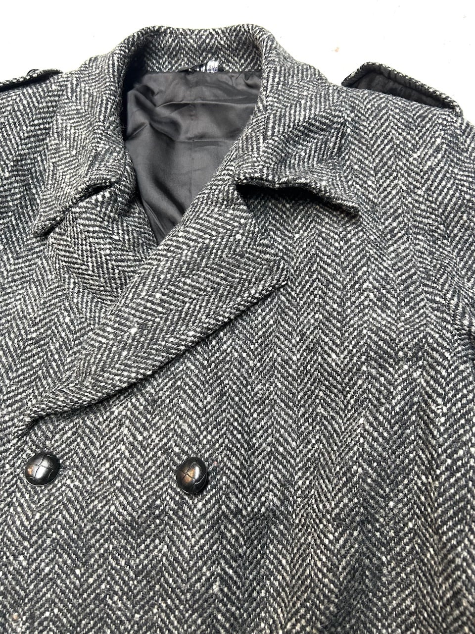 ツイードコートのほとんどが、よく見てもシングル襟のステンカラーコートが多いと思います。